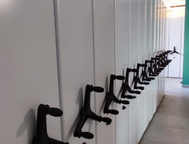 Комплекс из 130 мобильных стеллажей для архива документов клинической больницы