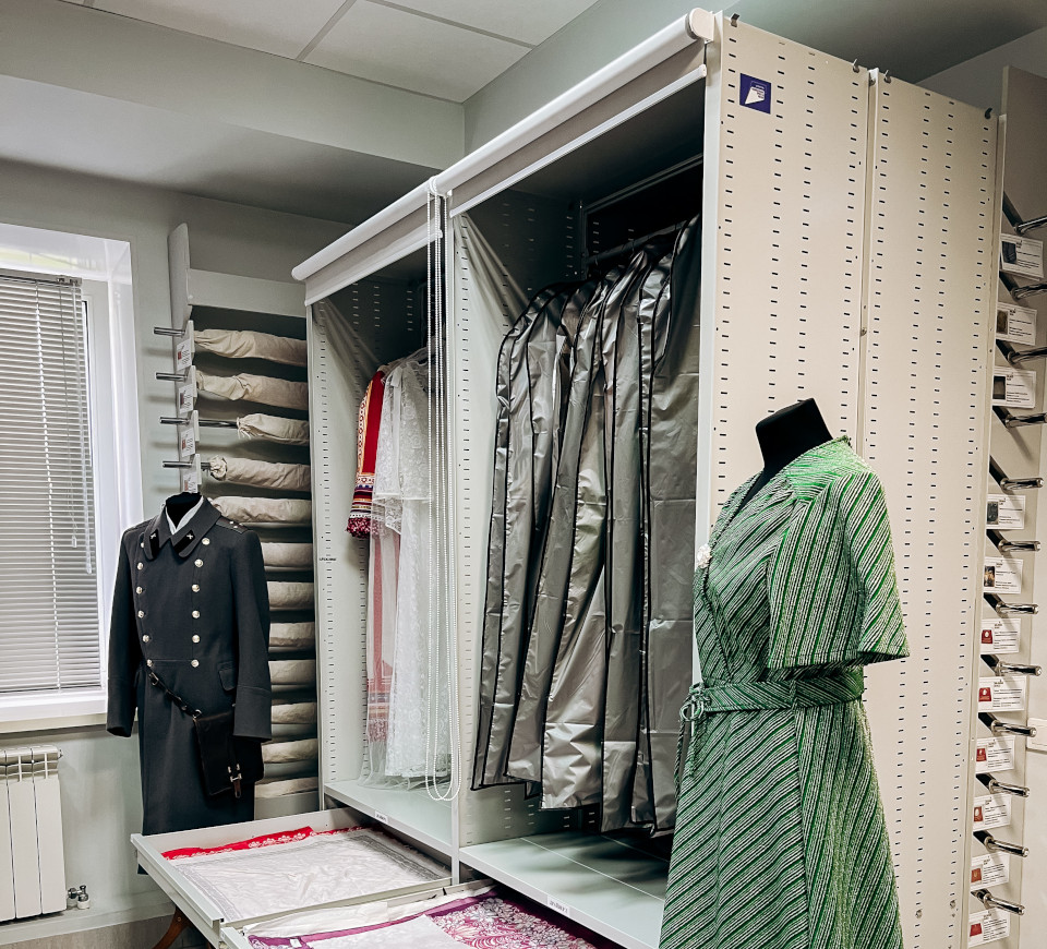 Изготовим передвижные стеллажи для хранения одежды на складе или в фондах музея с доставкой с завода производителя в города Ленинградской области и России.